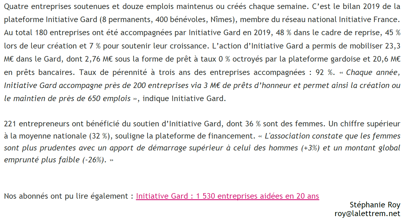Initiative Gard a accompagné 180 entreprises en 2019